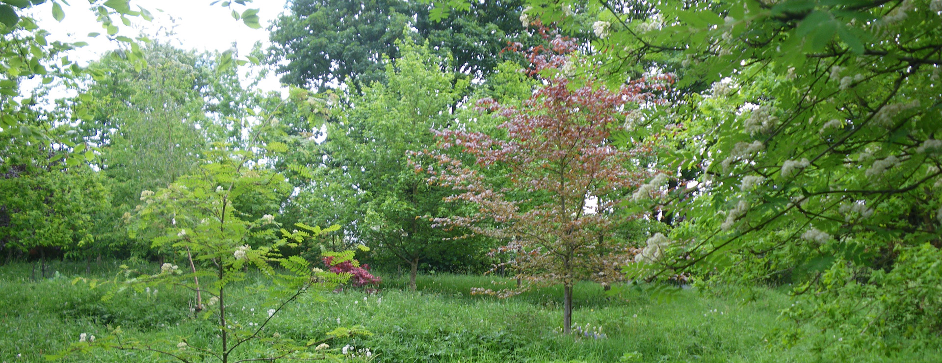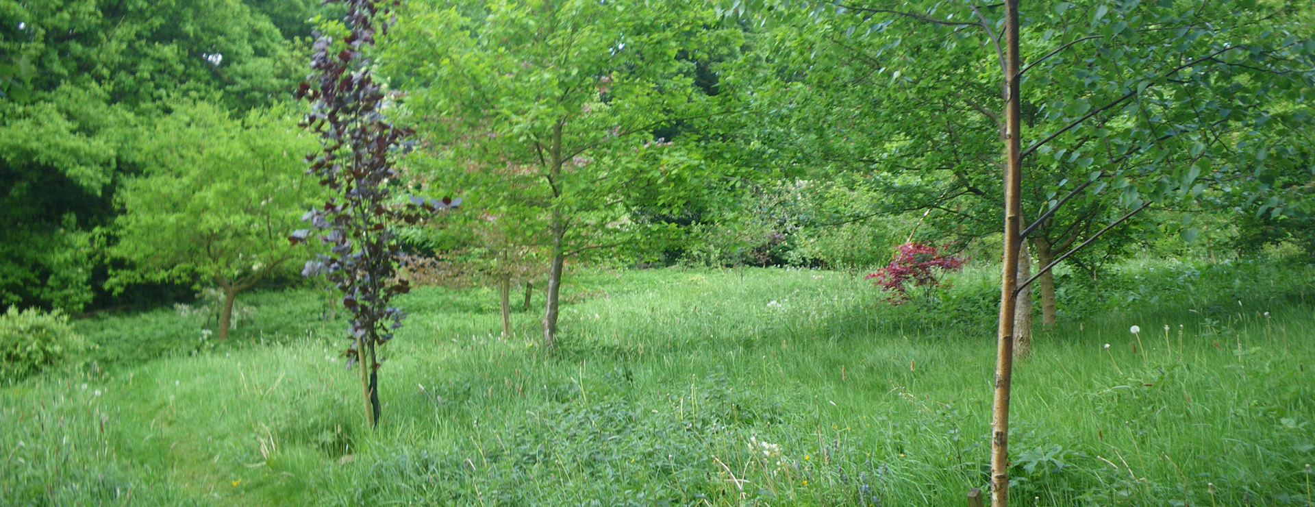 A peaceful sanctuary, the burial ground is surrounded on two sides by mature woods, and on a third side by a heritage railway line. The one acre site has around 250 mature trees and shrubs planted in it, and grass paths running through it.